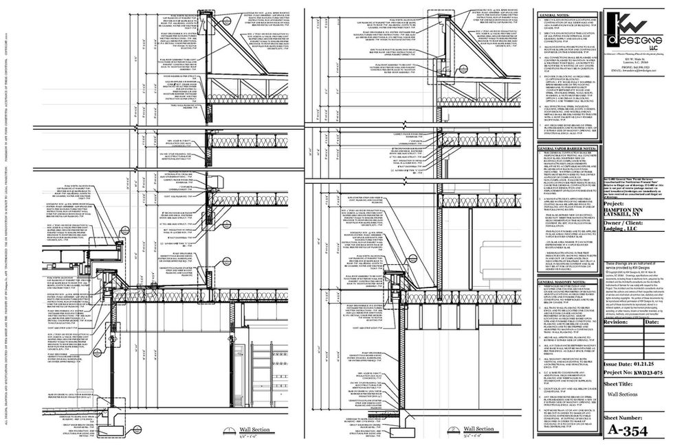 Hotel we are doing in NY. At KW Designs llc we strive to provide a higher end service, not just with design and construct-ability but all the way thru construction drawings. We draw our sections to a level of detail that we can use the base drawing for building sections, wall sections and even section details due to the level of detailing we provide on the larger drawing. Additionally "small items" such as drawing format may seem like not a big deal, however we have found if you present the information in a clear, organized, and precise manner; it helps minimize site issues and confusion in the field. I.E. if you take pride in what you produce, then end results in the field during construction will be better.